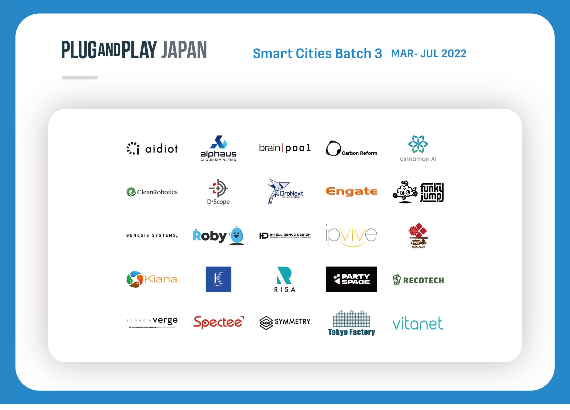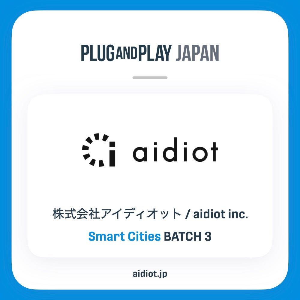 「BtoB領域の脳と心臓になる」というビジョンを掲げ、「データプラットフォームを用いてビジネスを最適化・最大化させていく」をミッションとしている株式会社アイディオット(本社:東京都渋谷区、 代表取締役:井上智喜、 以下「アイディオット」)は、Plug and Play Japan株式会社(所在地:東京都渋谷区、 代表取締役社長 ヴィンセント・フィリップ、 以下「Plug and Play Japan」)が主催するSmart Cities(スマートシティ)領域におけるオープンイノベーションを促進する第三期Smart Citiesアクセラレータープログラムに採択されたことをお知らせします。